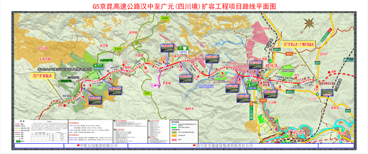 G5京昆高速汉中至广元(四川境)扩容工程项目路线平面图
